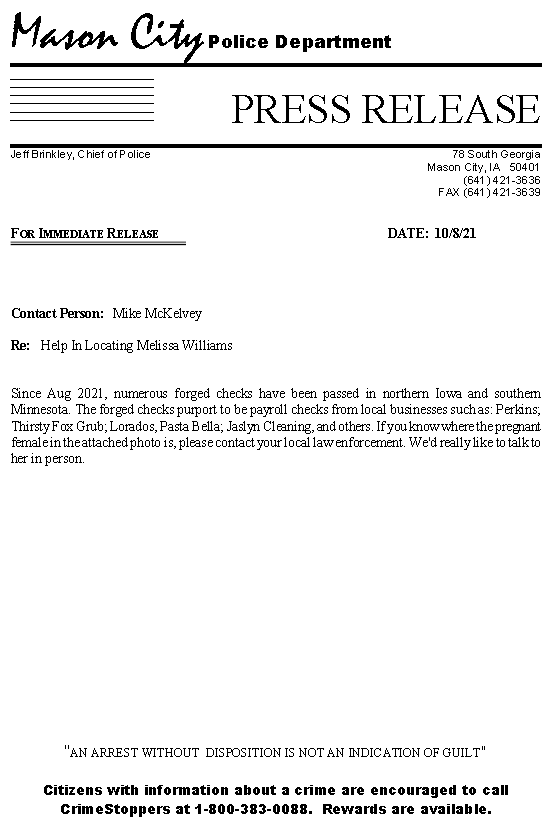 Contact the pros at breakthrough web design. Mason city police department 78 s georgia ave mason city, ia 50401 emergency: According to a news release from mcpd, when an officer.